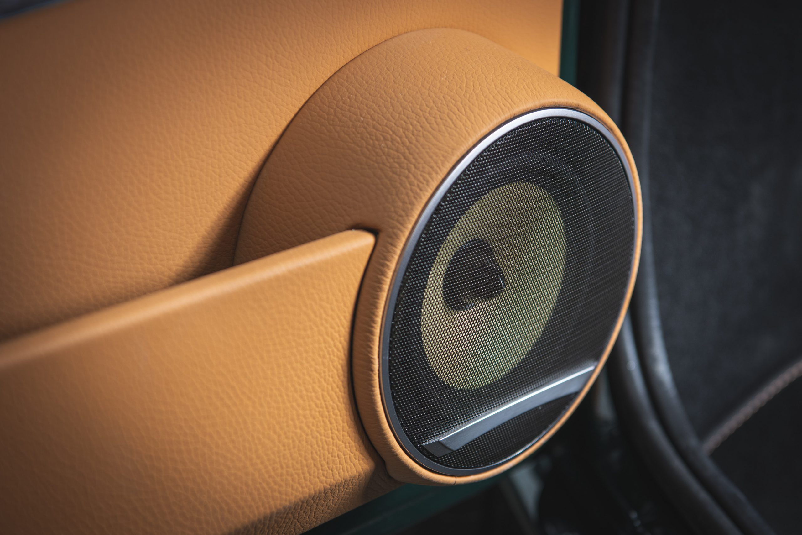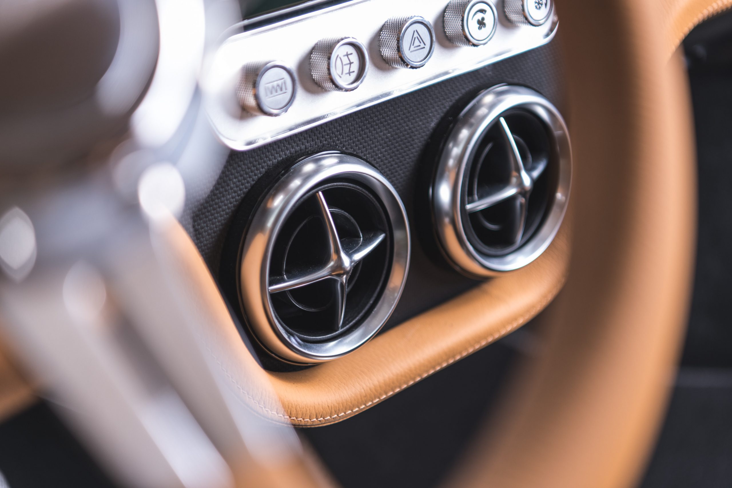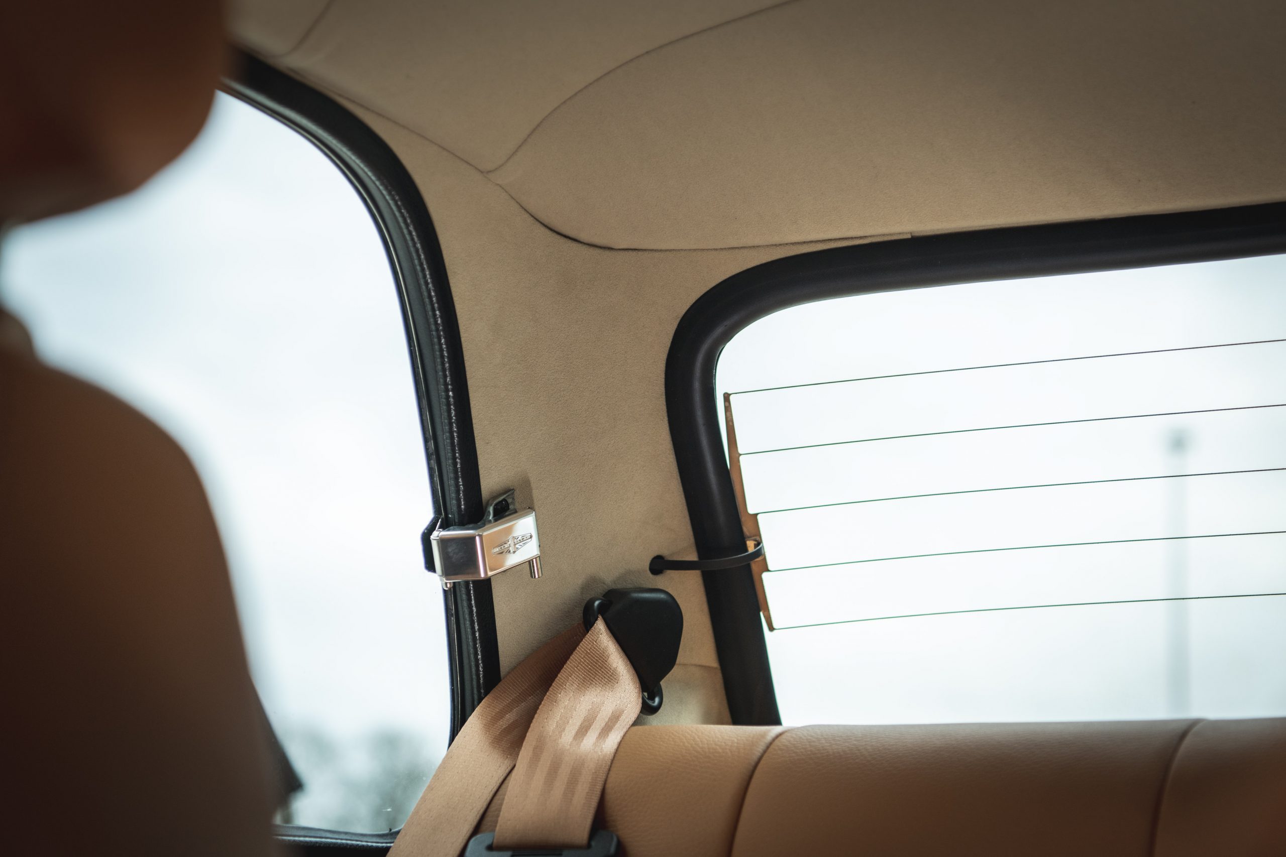 Chrome door handles grant you entry into the cabin, where you will be struck by a perfect blend of ‘Racing Green’ trim and ‘Sandalwood’ leather upholstery, complete with matching stitching and tan seatbelts. A ‘Cream’ Dinamica® headlining and Ivory LED illuminated Smiths® dials tie together with the exterior ‘Latte’ accents, to complete a stunning commission.